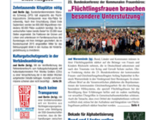 Welche rechtlichen Voraussetzungen braucht eine gelingende Gleichstellungsarbeit? Welchen Problemen sollte sich die Gleichstellungspolitik gegenwärtig stellen? Diese und weitere Fragen diskutierten die Frauen- und Gleichstellungsbeauftragten auf der 23. Bundeskonferenz der Kommunalen Frauenbüros. Das zwd-POLITIKMAGAZIN berichtet in seiner neuen Ausgabe über die Konferenz und ihre Beschlüsse. Zudem präsentieren wir die Positionsbeschreibung der BAG Kommunaler Frauenbüros "Gleichstellungspolitik 3.0".