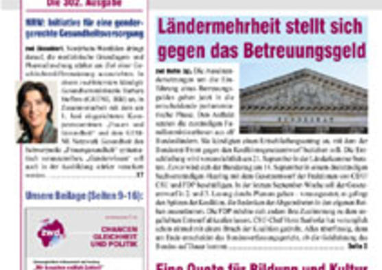 Neue Ausgabe erschienen: ZWD-FRAUENMAGAZIN 302 : Über die Zukunft des Betreuungsgeldes wird in Karlsruhe entschieden Ländermehrheit stellt sich gegen die Geldleistung mehr...