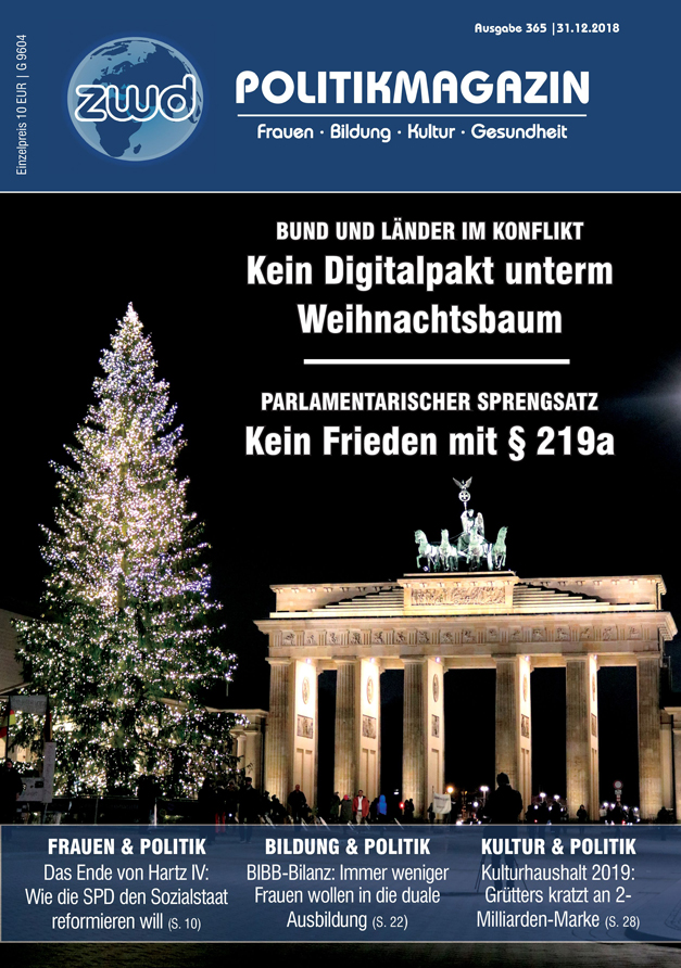 Die Bemühungen um eine Wahlrechtsreform mit dem Ziel einer Verkleinerung des Bundestages sind nicht vorangekommen. Ein zentrales Thema hat die Parlamentskommission unter Vorsitz von Bundestagspräsident Wolfgang Schäuble gar nicht erst angefasst: Wie kann der geringe Frauenanteil im Bundestag erhöht werden? Das Zauberwort heißt Parität. Wie kann eine "verfassungsfeste Lösung" aussehen? Darum geht es in der Titelgeschichte der Ausgabe 367 des zwd-POLITIKMAGAZINs.