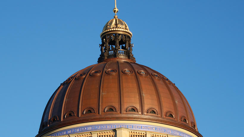 Dieser Sichtweise widerspricht der katholische Erzbischof des Bistums Berlin Dr. Heiner Koch. „Die Bibelverse betonen, dass die Menschen sich nur vor Gott verbeugen und keiner irdischen Macht diese Ehre erweisen sollen: Welche Freiheit spricht aus diesen Worten!“ Ebenso sieht das der Kulturbeauftragte der evangelischen Kirche, der Theologe Johann Hinrich Claussen. Keineswegs stünden die Bibelverse für Staatsfrömmigkeit und Unduldsamkeit. Es seien „herrschaftskritische Verse, die für Glaubensfreiheit einstehen“, interpretiert er die Bibelstellen. Als „intolerante Exklusivitätsansprüche“ dagegen deutet sie der Bischof der Evangelischen Kirche Berlin-Brandenburg-schlesische Oberlausitz, Dr. Christian Stäblein. Selbst als historische Zitate seien sie gefährlich und brauchten Gegenbilder. Christoph Markschies, evangelischer Professor für antikes Christentum, sieht zwar auch die Problematik der Inschrift, möchte sie aber dennoch nicht ausblenden, sondern sich damit auseinandersetzen. „Für mich gehört es auch zur Ehrlichkeit dieser Rekonstruktion, dass man das Problematische der christlichen Theologiegeschichte zeigt“, erklärt er.