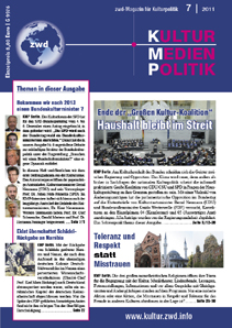 Das zwd-Magazin KULTUR.MEDIEN.POLITIK (K.M.P) ist im Abonnement sowie als Einzelheft zu beziehen bei der zwd-Mediengesellschaft mbH, Luisenstraße 48, 10117 Berlin (Tel. 030-22487475; Fax: 030-22487484; mail: service@zwd.info).- Das Abonnement kostet bei Bestellung bis 31.12.2011 36 Euro jährlich (mit Nutzung des KMP-Internet-Portals 72 Euro jährlich), incl. Versandkosten und MwSt. Ab 2012 kostet das Print-Abonnement 48 Euro p.a.