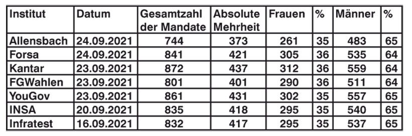 Die Mandatsberechnungen der führenden Meinungsforschungsinstitute