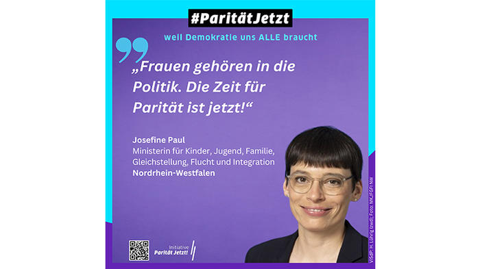Die sächsische Staatsministerin der Justiz und für Demokratie, Europa und Gleichstellung Katja Meier (GRÜNE) hat die Kampagne "ParitärtJetzt!" mit einem Testimonial-Statement unterstützt: "Nur mit gleichberechtigter demokratischer Teilhabe in den Parlamenten können Frauen effektiv Einfluss nehmen und ihre Interessen und Lebenswirklichkeiten in politisches Handeln einfließen." mehr...