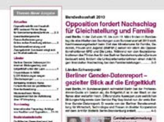 ZWD-MAGAZIN FRAUEN.GESELLSCHAFT UND POLITIK NR. 276 (2010) ERSCHIENEN : Haushalt 2010: SPD und Linke wollen Nachschlag für Gleichstellung und Familie mehr...
