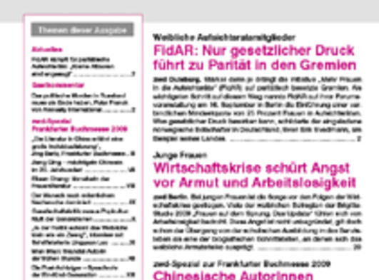 ZWD-MAGAZIN FRAUEN.GESELLSCHAFT UND POLITIK NR. 271 (2009) ERSCHIENEN : Frankfurter Buchmesse: Chinesinnen auf dem Weg zur Selbstbestimmung