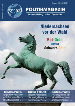 zwd-RedaktionIm Mittelpunkt dieser Ausgabe steht die niedersächsische Landtagswahl. Dabei geht es nicht nur um die Zukunft des rot-grünen Bündnisses unter Ministerpräsident Stephan Weil. Stärker noch wird das Wählervotum auf die Entwicklung der bundesdeutschen