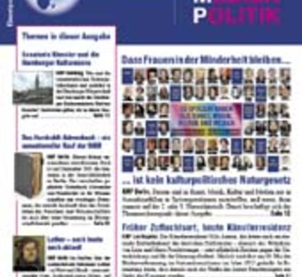 "Dass Frauen in der Minderheit bleiben, ist kein kulturpolitisches Naturgesetz" Interview mit Hamburgs Kultursenatorin Barbara Kisseler über Frauenteilhabe, Bundeskulturminister und Elbphilharmonie Nur wenige Frauen als Intendantinnen oder in Orchestern Quizmasterinnen verdienen 68 Prozent weniger als ihre Kollegen KMP-Plakat: 60 Spitzefrauen aus Kunst, Musik, Kultur und Medien mehr...