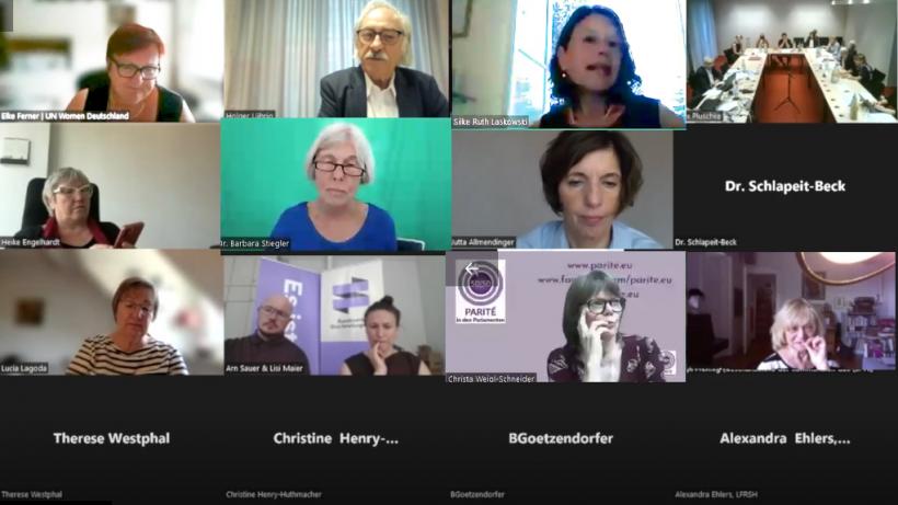 Gesprächsreihe Chancengleichheit 2030: Themenblock 2 „Mehr Frauen in die Parlamente“ im Rahmen einer Videokonferenz, aufgezeichnet am 4. Juli 2022 im Bundestag, – zum Thema „Mehr Frauen in die Parlamente“ unter Mitwirkung von Elke Ferner (UN Women/DF), Leni Breymaier (MdB/SPD), Ulle Schauws (MdB/Grüne), Prof.in Silke Ruth Laskowski, alle Mitglieder der #Wahlrechtskommission des Bundestages.