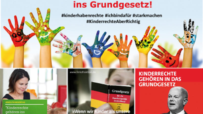 Über Facebook verbreitet ), haben die Kanzlerkandidat:innen von SPD und Grünen, Olaf Scholz und Annalena Baerbock (jeweils mit Konterfei), sowie Linken-Spitzenkandidat Dietmar Bartsch ihr Bekenntnis zur GG-Änderung zugunsten der Kinderrechte verbreitet. Ob die Politiker:innen eine jedoch eine Chance haben werden, im nächsten Bundestag die notwendige Zwei-Drittel-Mehrheit für eine Verfassungsänderung zu erreichen, hängt zwar auch von dem Ausgang der Wahlen am 26. September ab. Andererseits: FDP und Union haben sich in ihren hier dokumentierten Wahlprogrammen dazu ausgeschwiegen, jedoch haben sich die Liberalen zuletzt im Bundestag offen für eine Verfassungsänderung gezeigt. Aber ohne CDU und CSU bleibt eine verfassungsändernde Mehrheit im Parlament einstweilen eher fraglich. Alles hängt am Ende daran, ob SPD, Grüne, FDP und LInke am Ende eine verfassungsändernd Mehrheit zusamnenbringen.